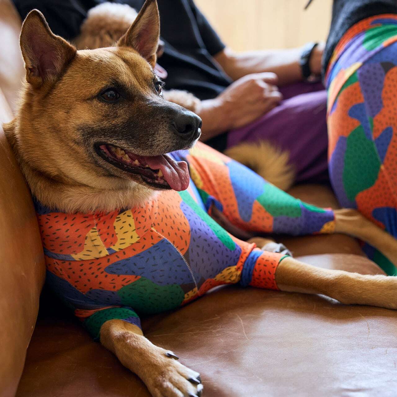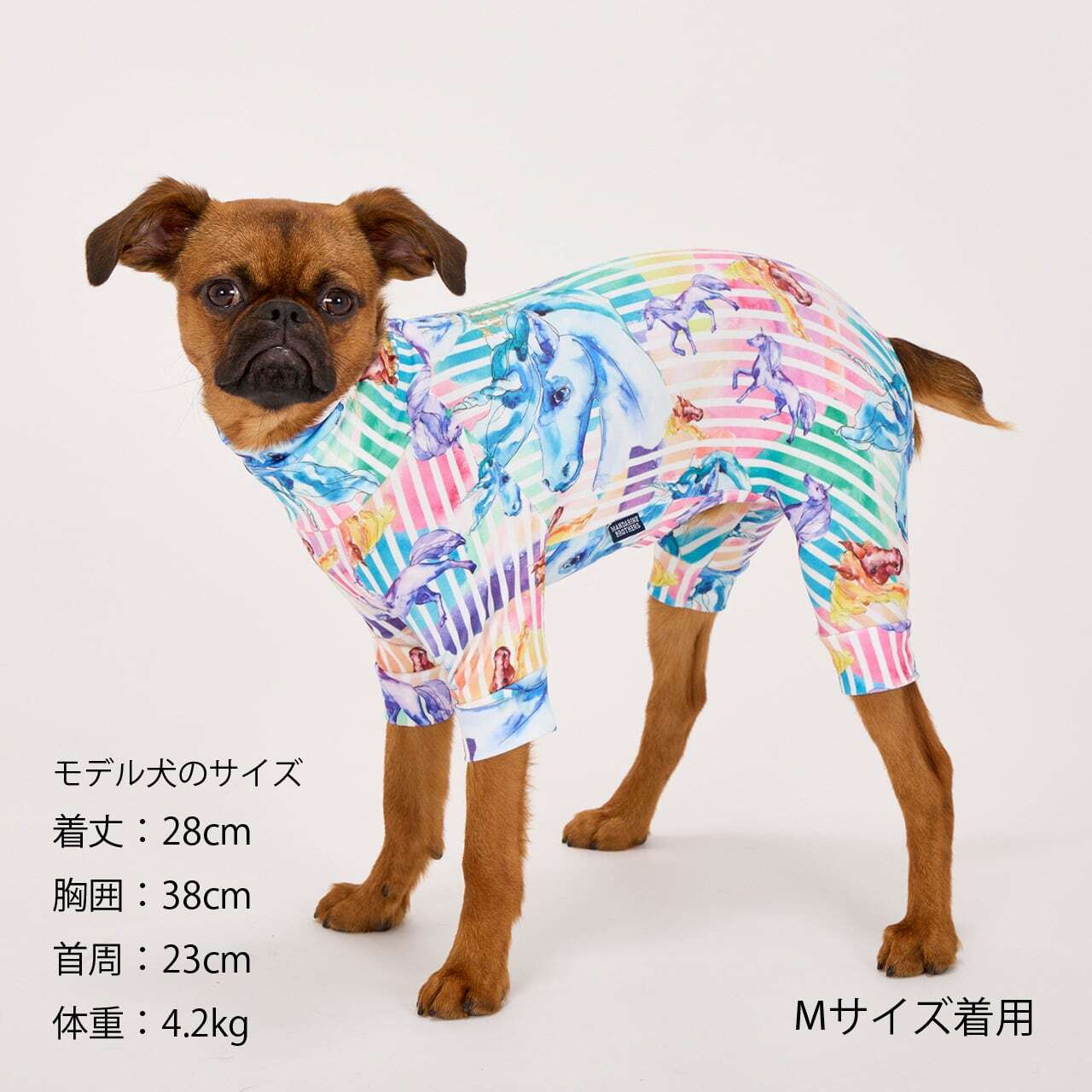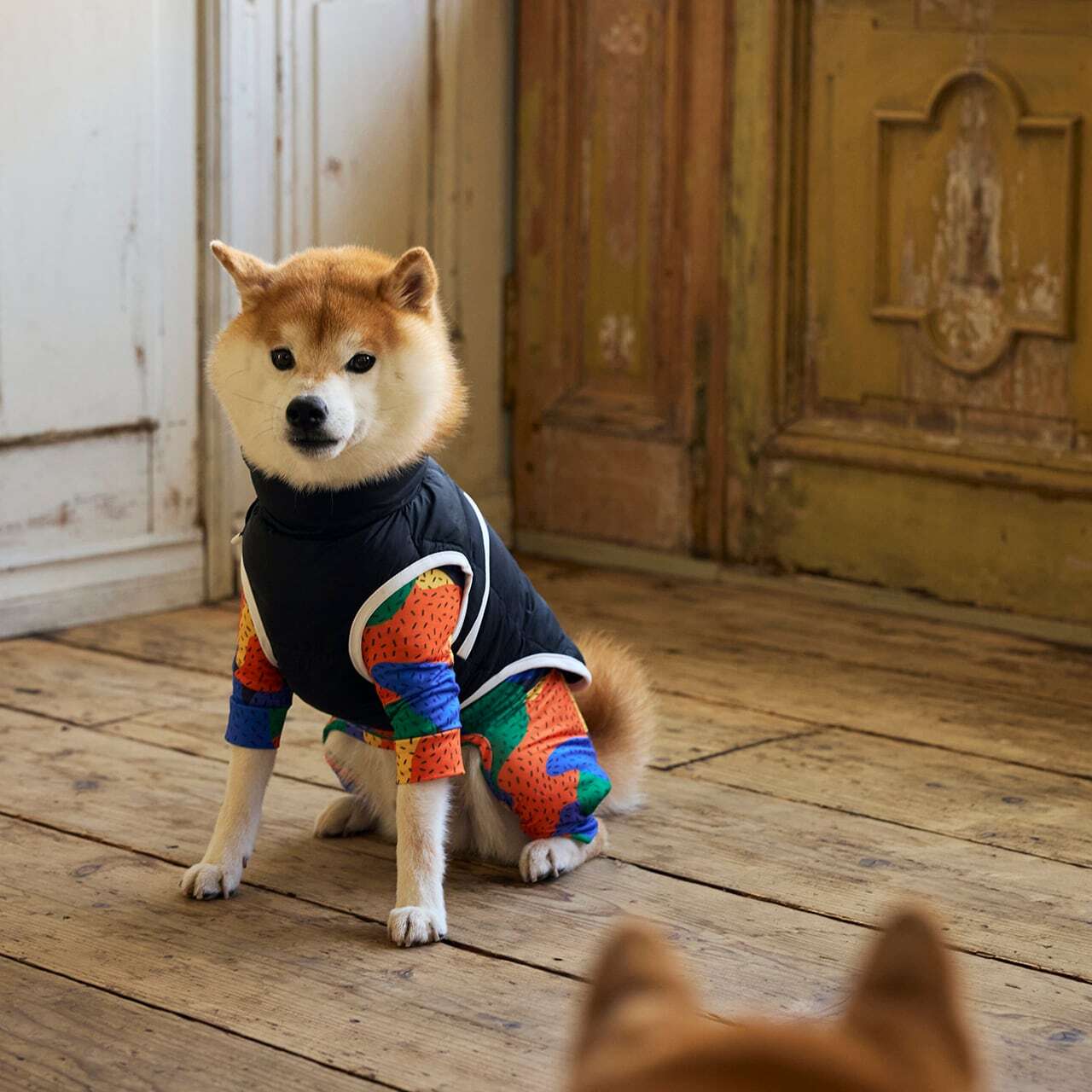 毛抜け対策や汚れ防止だけじゃ物足りないワンちゃんにとっておきのアイテム。1枚でも重ね着でもオシャレに決まるマルチプリントスーツ!
