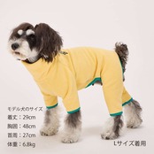 背中のロゴワッペンとパイピングカラーがアクセントのボアスーツ。