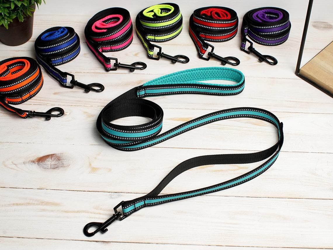 ハンドメイド品♪メッシュパッド入りリフレクションダブルハンドルドッグリード
