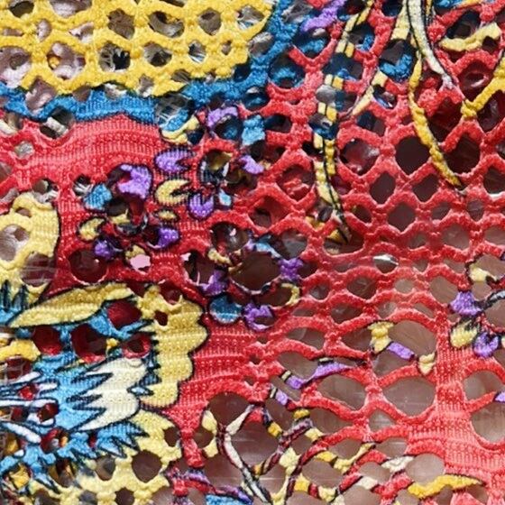 レトロな雰囲気のビッグフラワー柄に涼しげなメッシュ素材で、夏でもおしゃれを楽しめます。