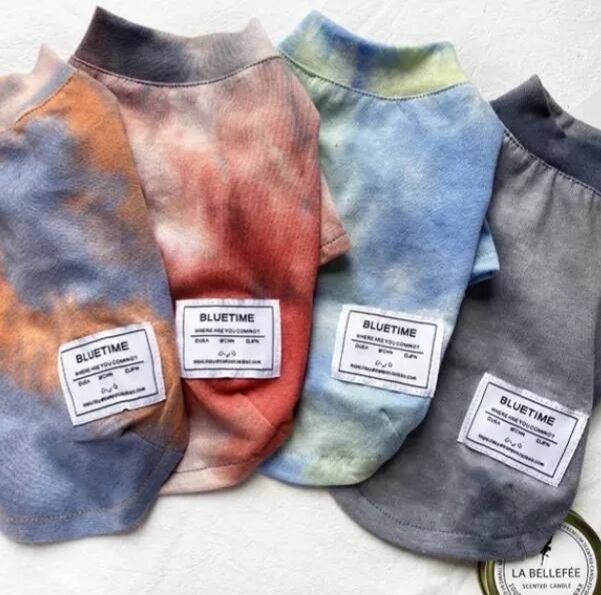タイダイ柄が涼しげでオシャレ、豊富なカラーであなたのワンちゃんにお似合いの1枚が見つかります。素材も薄手なので夏でも着用可能!