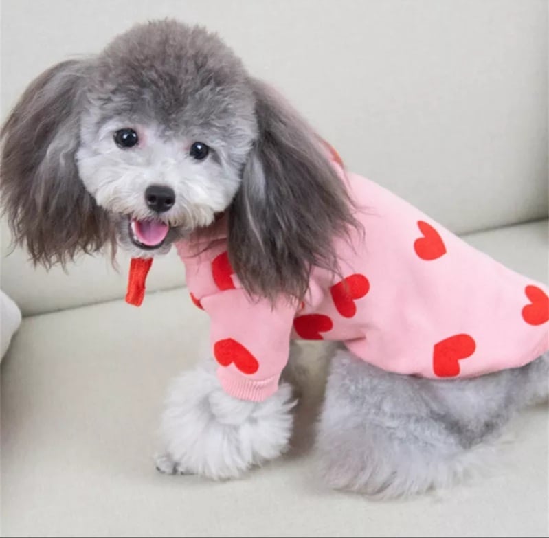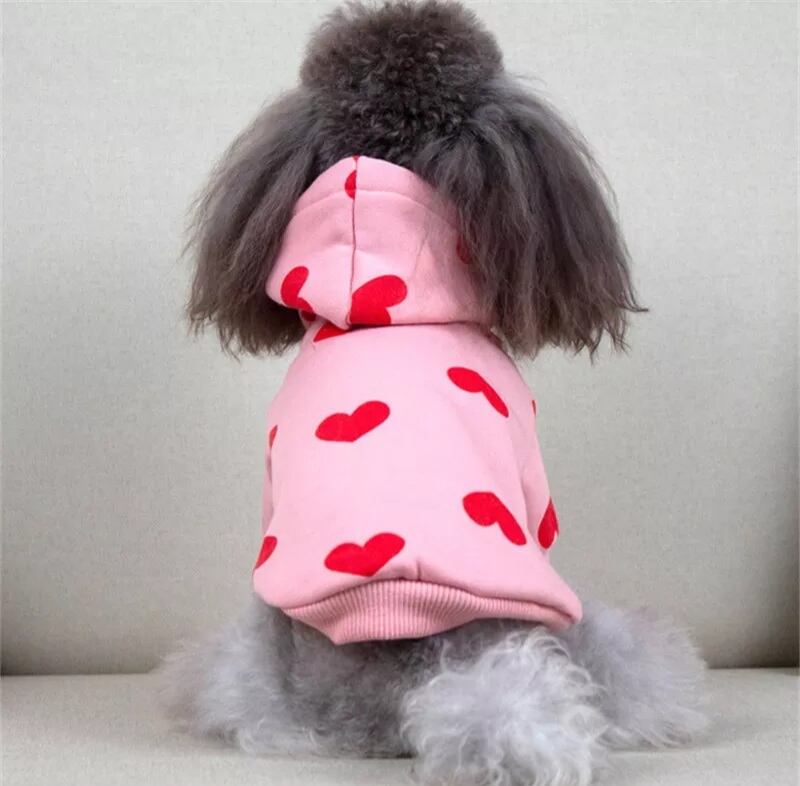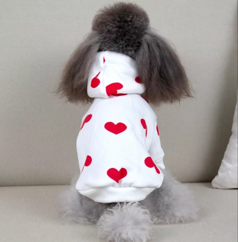 秋冬服の準備はできていますか?大きなハート柄がアクセントのフーディで白はクールに、ピンクはキュートな印象で着用していただけます。薄手ですが、裏起毛であったかです。