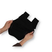 胸に伸縮性のあるVガゼットを採用し、頭の大きいワンちゃんでも着用しやすくなっています。