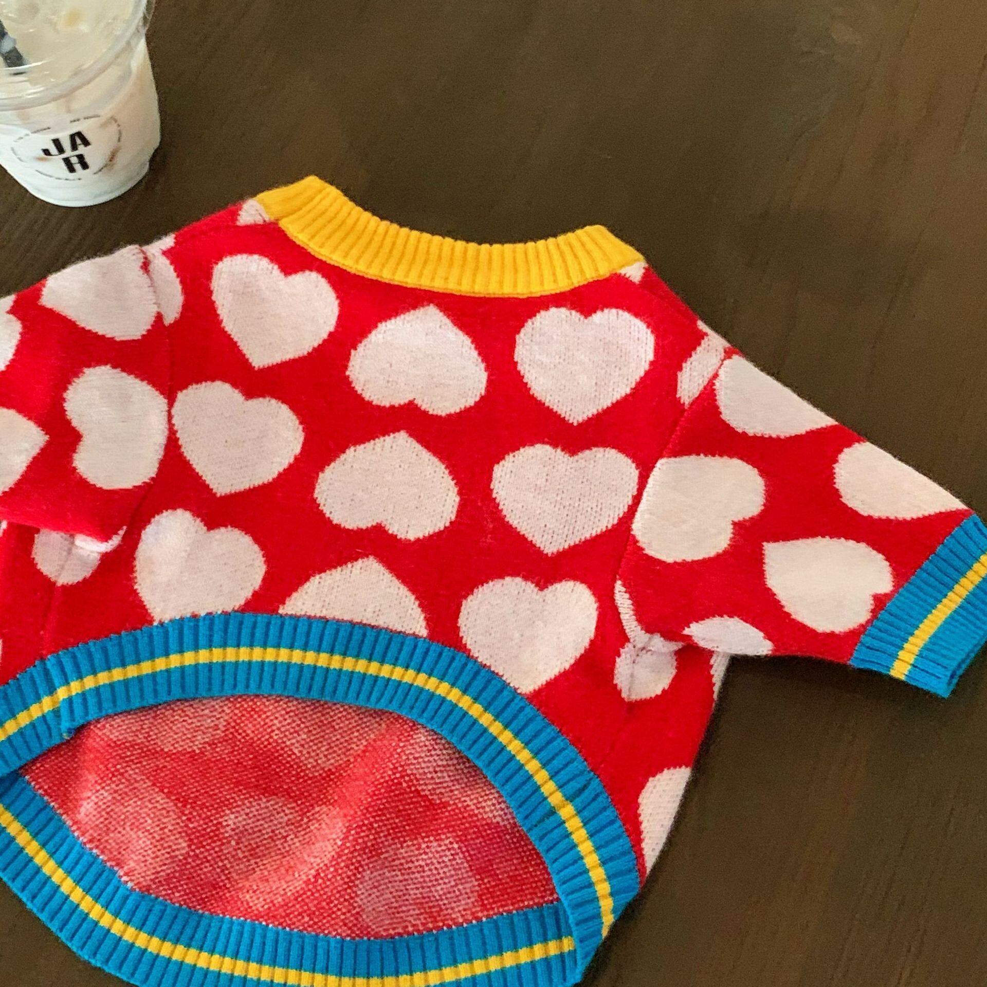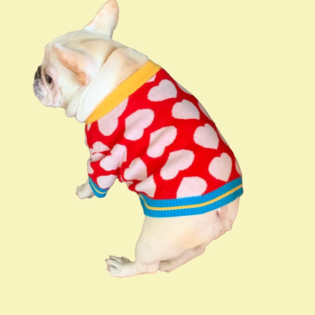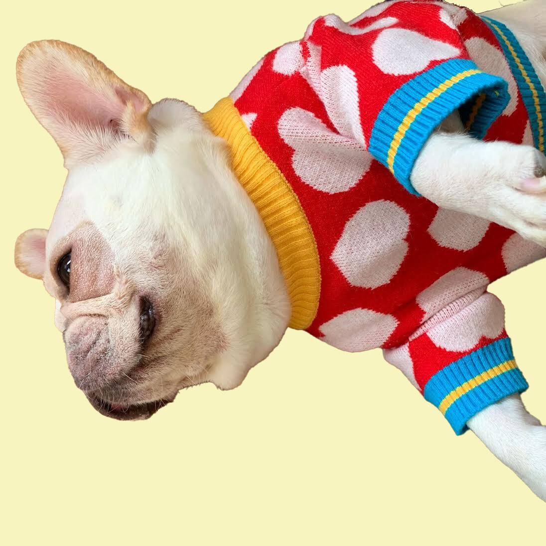 大きなハート柄にカラフルなラインがどこかレトロポップ。フレンチブルドッグも着用可能なワイドタイプです。