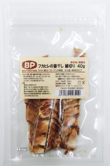 毛鹿鮫(もうかざめ)のフカヒレを使用した与え易い細切りタイプ。DHA・鉄分・コラーゲンの補給におすすめです。