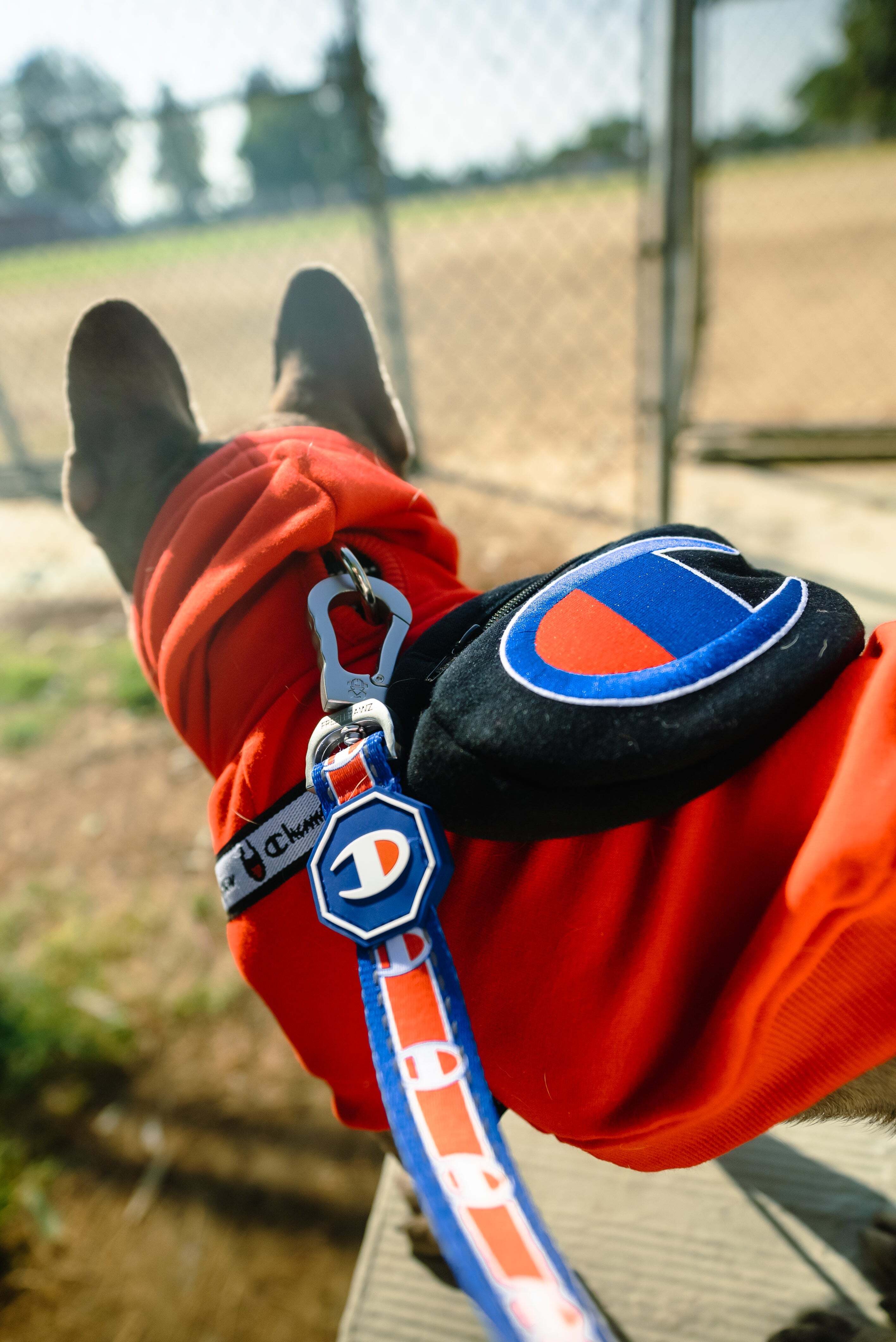 大人気ブランドCHAMPIONとの限定コラボリードです。ネオプレンパッド付きの快適なハンドルで耐久性があり、ソフトな感触です。夜間のお散歩にも安全な反射材使用。