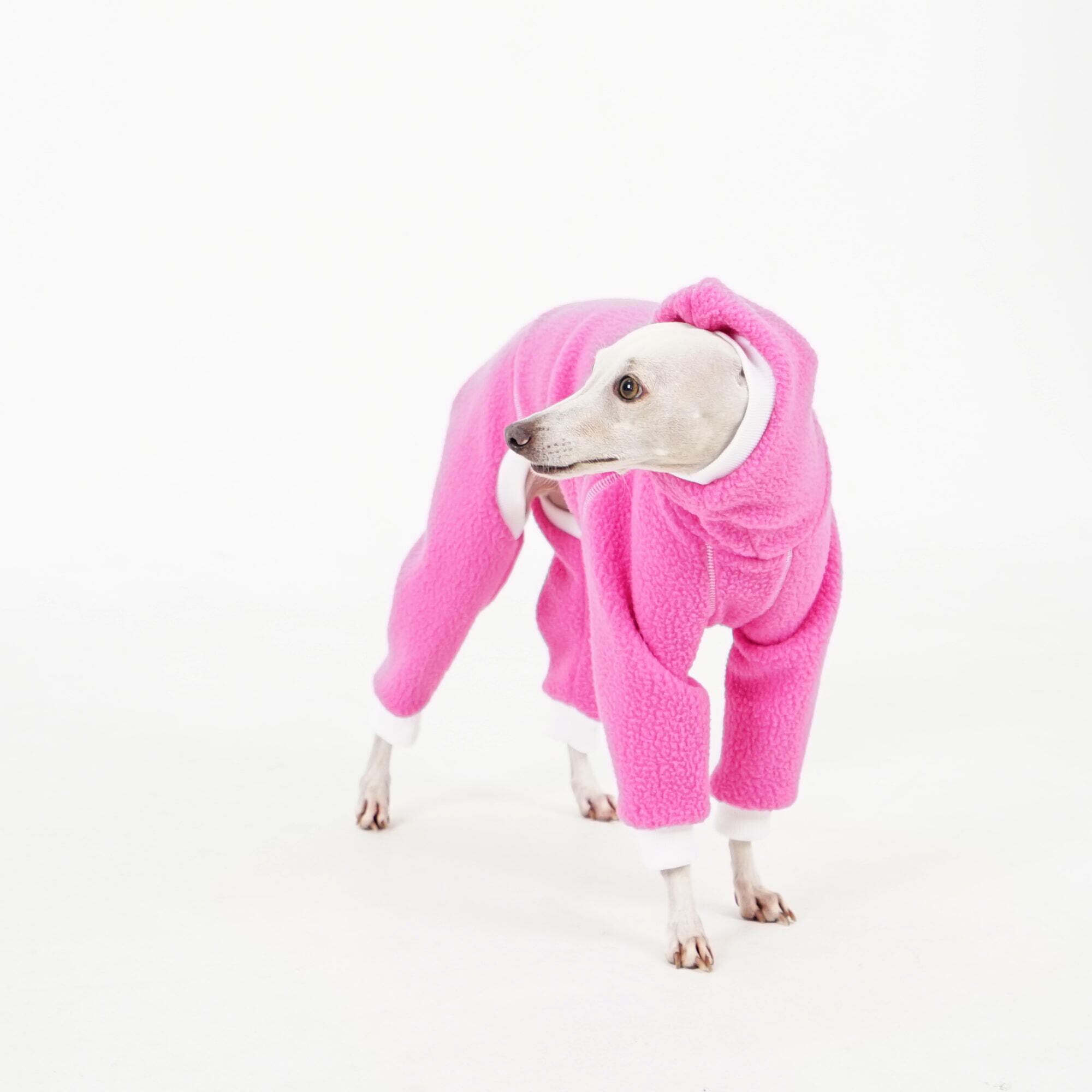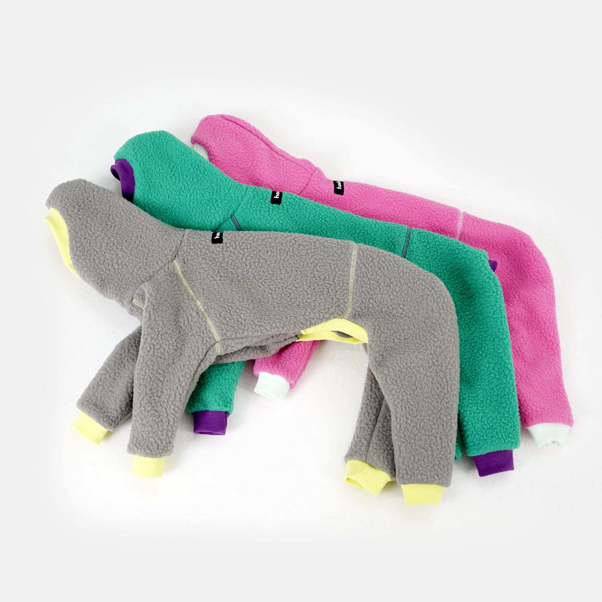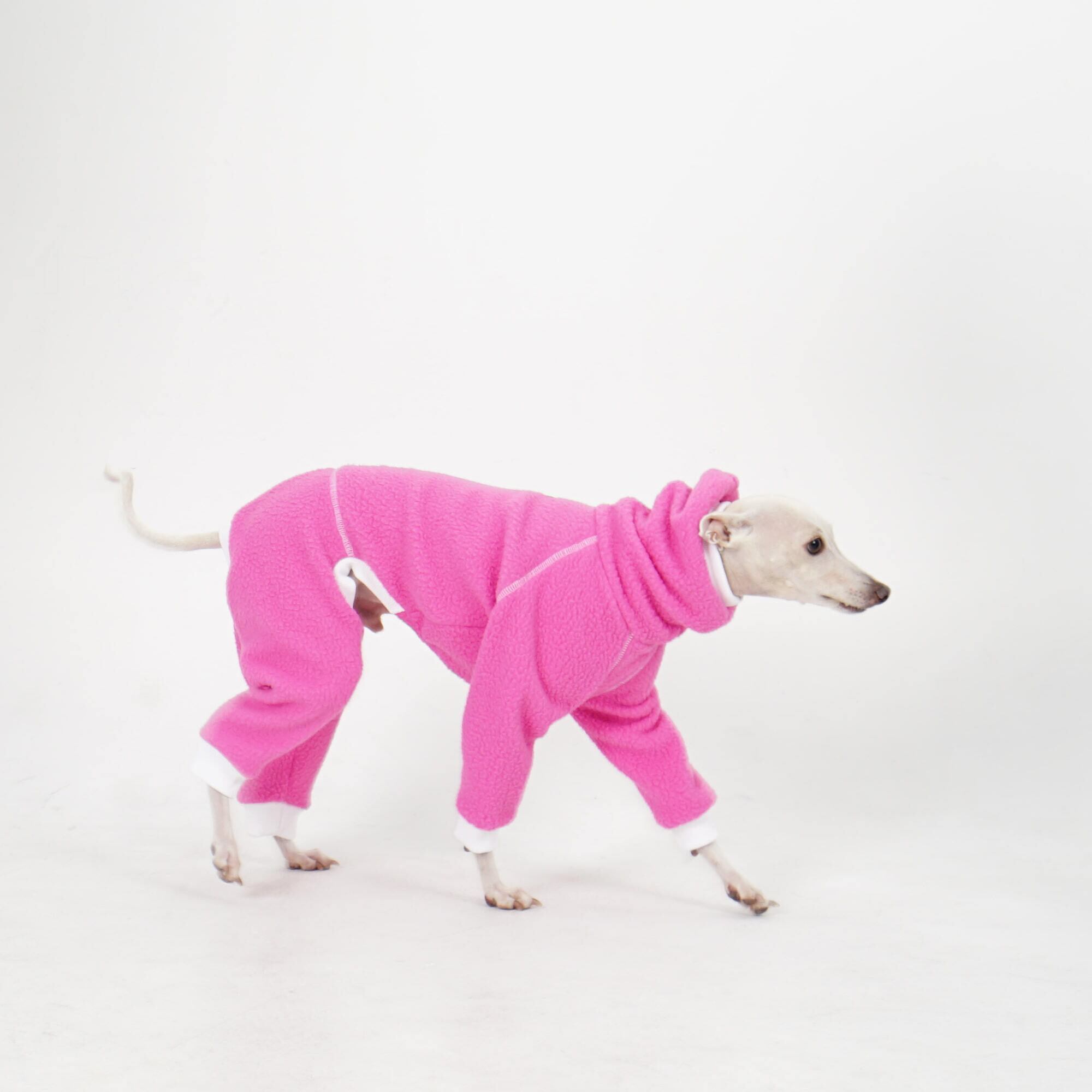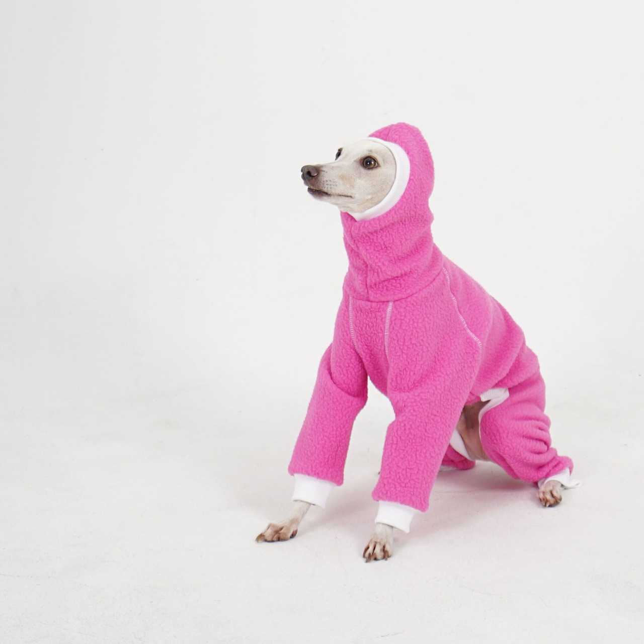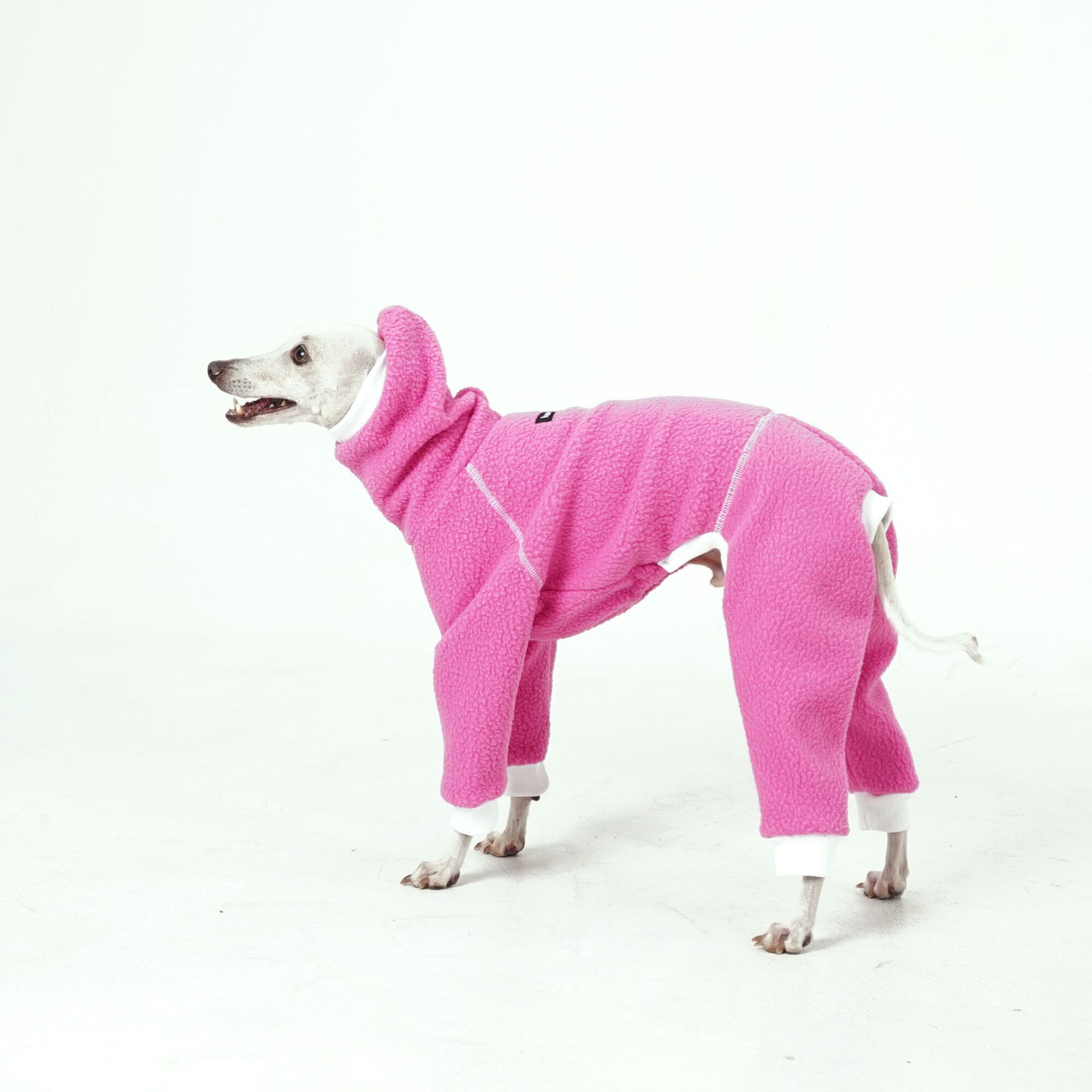 イタリアングレーハウンド専用、軽くて暖かく、速乾性のあるフリース素材を使用しました。首部分を少し長くして寒い日には耳まで大切に保護できるようにデザインされています。 キュートなデザインで、ステッチにポイントカラーが入ったロンパースです。