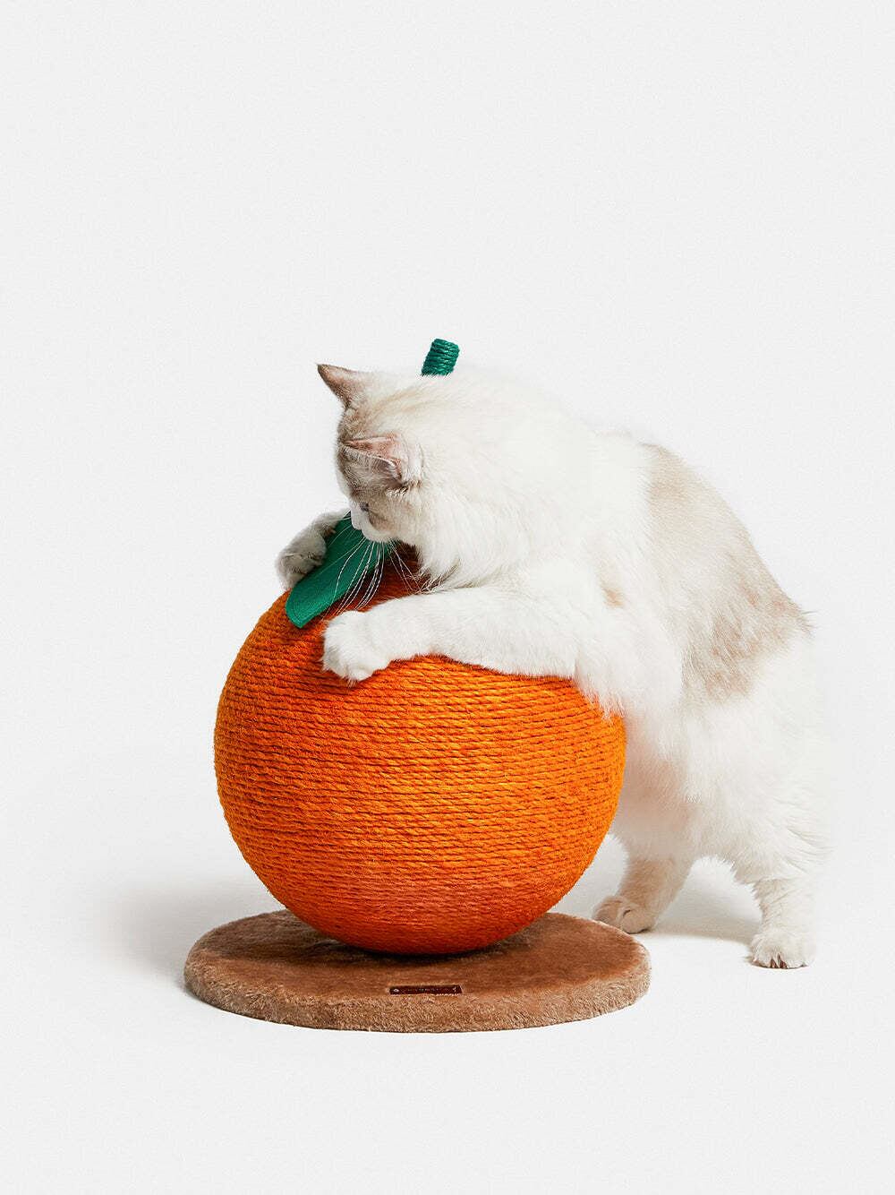 VETRESKAの木立から採れたばかりのこのおいしいミカンは、ひっかいたり、ひっかかれたり、登ったりするのに最適なものです。丸い外見に太いジュートロープが巻かれ、その耐久性には驚くほど優れています。猫たちはこのファンキーなキャットスクラッチャーの上でのびのびと過ごし、あなたもお部屋を明るく爽やかにしてくれることでしょう。 このスクラッチャーは、子猫や小型の猫におすすめです。