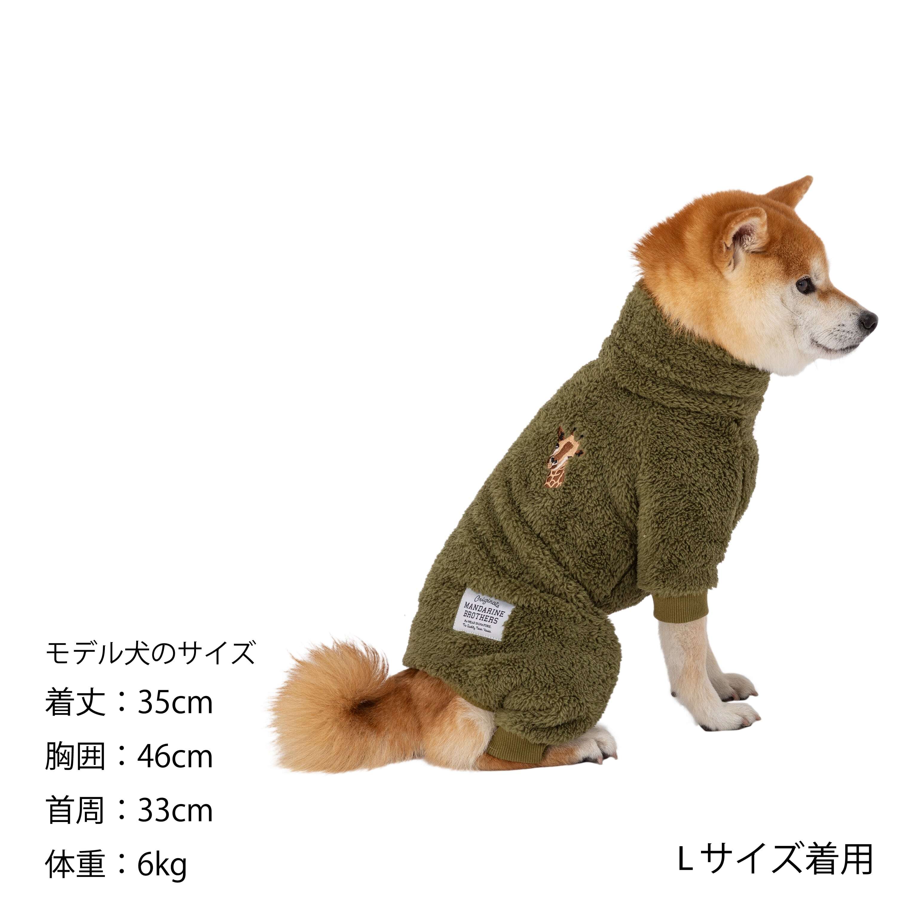 いまや寒がりのわんちゃんには手放せない毎シーズン変わるワンポイント刺繍も人気のもこもこロンパース。両面ボア生地がまるで全身ふかふかのブランケットに包まれているかのよう。