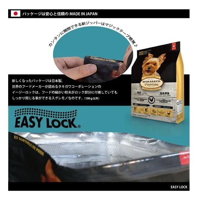 全てのアダルト犬種に最適なナチュラルホリスティックフードです。愛犬がプロテインを摂取しやすいよう、新鮮な白身魚を使用しています。今のドライフード『丸呑み』していませんか・・・?従来の硬いドライフードに比べて、オーブン・ベークドトラディションは粒が柔らかく仕上がるためフードを丸呑みしてしまうペットの内臓にかかる消化負担を軽減。栄養吸収にも優れています。