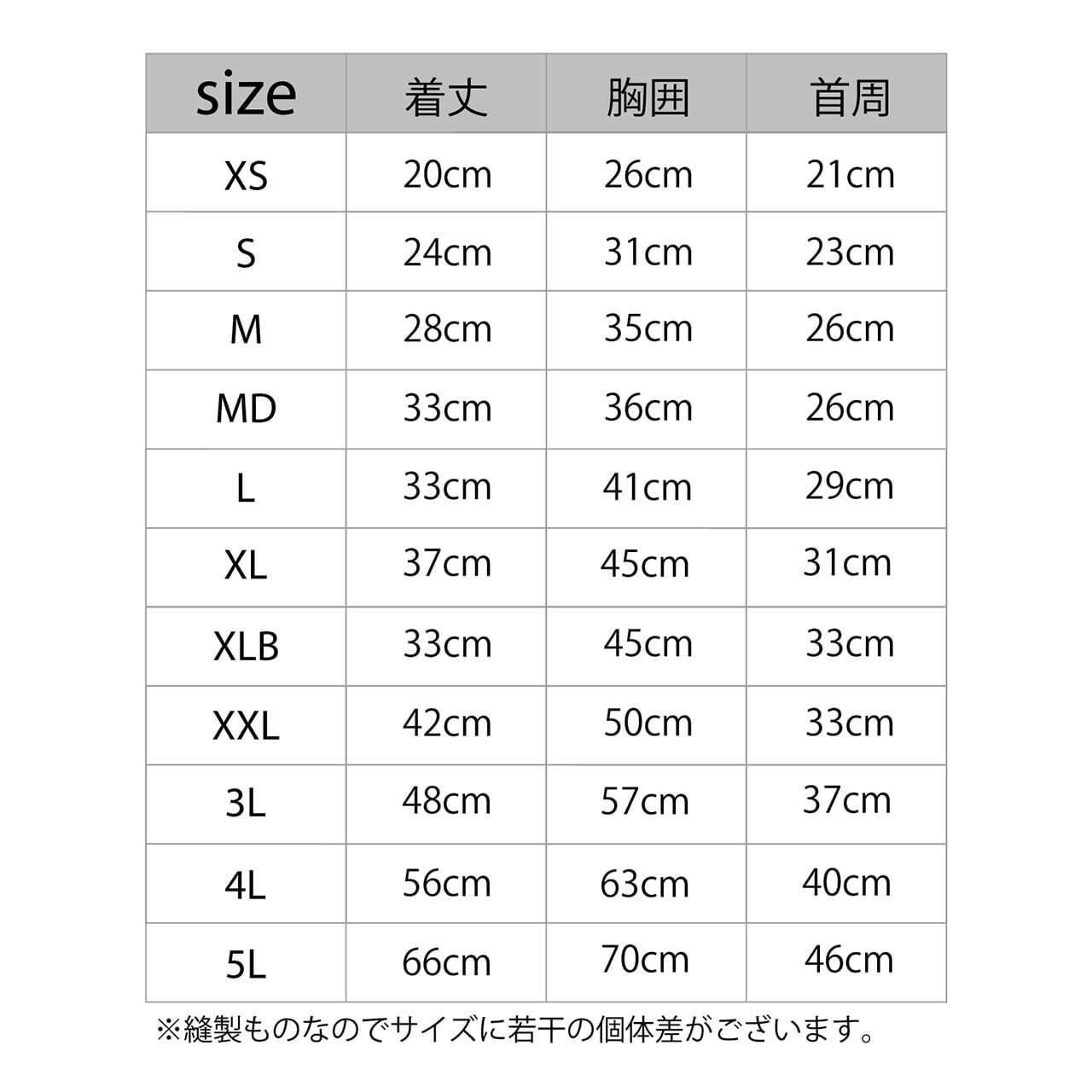 XXL-胸囲50cm 背丈42cm 首周33cm