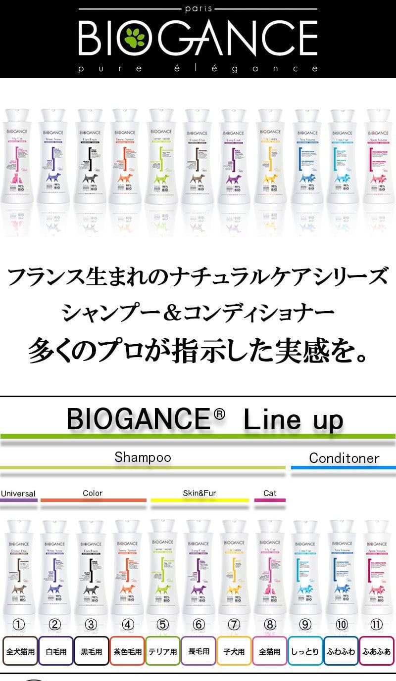 大自然の神秘にヒントを得て開発されたフランスNo.1ペットケアブランドです。天然オーガニック成分の働きを最大限に活用することによってペットと自然環境に優しい製品開発を行っています。パラベン、フェノキシエタノール、動物性油脂、合成着色料を使用していません。天然植物成分の力を活用することにより、健康なペットの本来備わる美しい被毛や健やかで清潔な被毛を維持することができると考えています。全ての製品について全成分と水素イオン指数(pH)を明記しています。